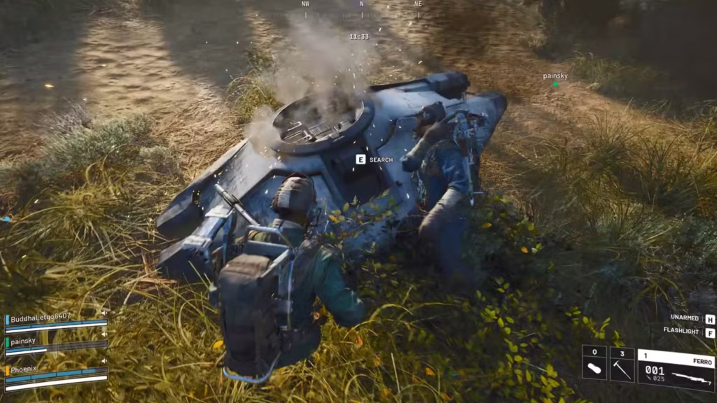 4. インタラクト: 残骸に近づき、「調査」を行います。
