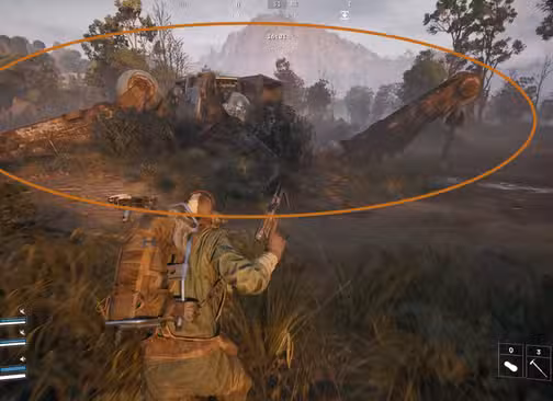 3. 「黒い煙」を探す: 空に向かって細く立ち昇る黒い煙があれば、そこがARCの残骸(探査機か配達機の残骸)の場所です。