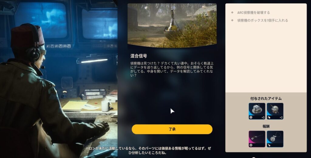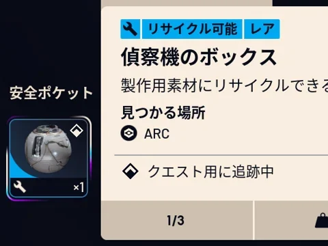 ARC偵察機を破壊すると、バラバラになったパーツの中に「偵察機のボックス」があります。。