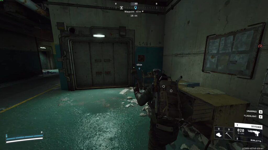 出口を出て左に曲がると、廊下の先に「LAB1」と書かれたラベルのドアが見えるはずです。そこが目的地です。