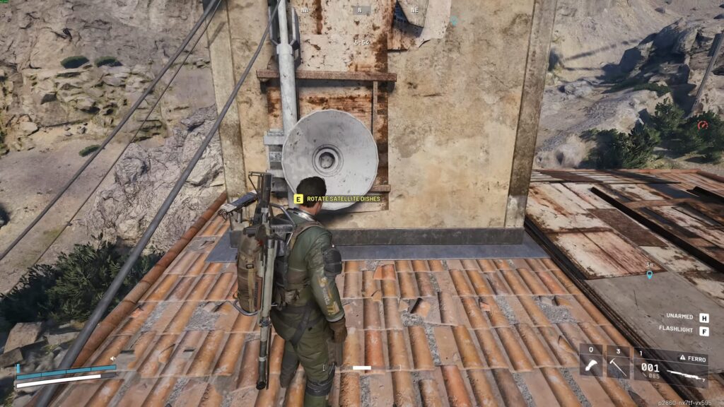 - 攻略: 少し分かりにくい場所にありますが、小さなキャンプ跡にある黄色い端末が目印です。「端末の電源をつける」を実行すればOK。オリーブの木を目印に、南西方向の坂を登ってみてください。