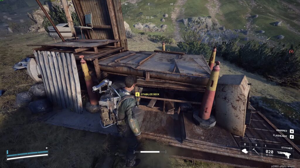 - 攻略: 山沿いに木製の”展望台”があります。デッキの支柱付近にある「デッキを安定化させる」という表示を探してインタラクトしましょう。見晴らしが良いので、ARC(アーク)に見つからないよう注意!