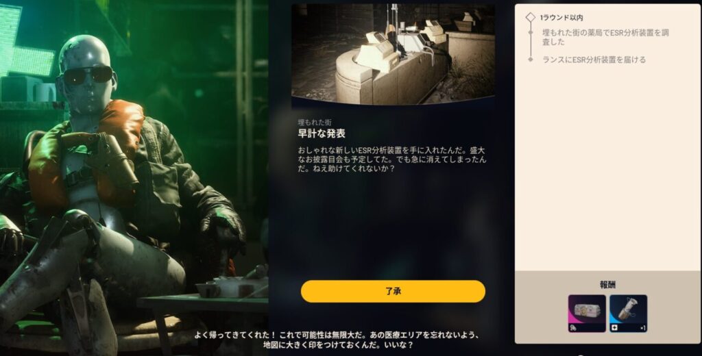 • 目標:”ESR分析装置”を回収し、脱出する。