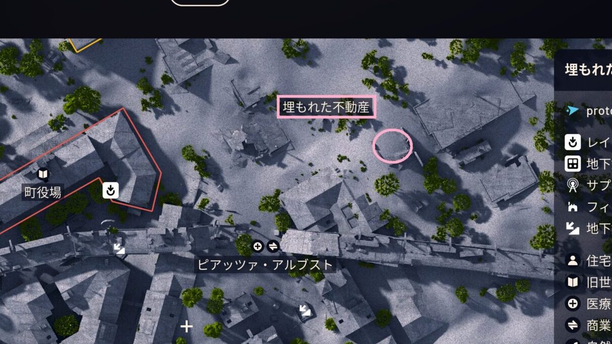 • ショートカット(時短テク): 実はマーカーを一つずつ追う必要はありません。最終目的地は、マップ東側にある「埋もれた不動産」のすぐ近くです!