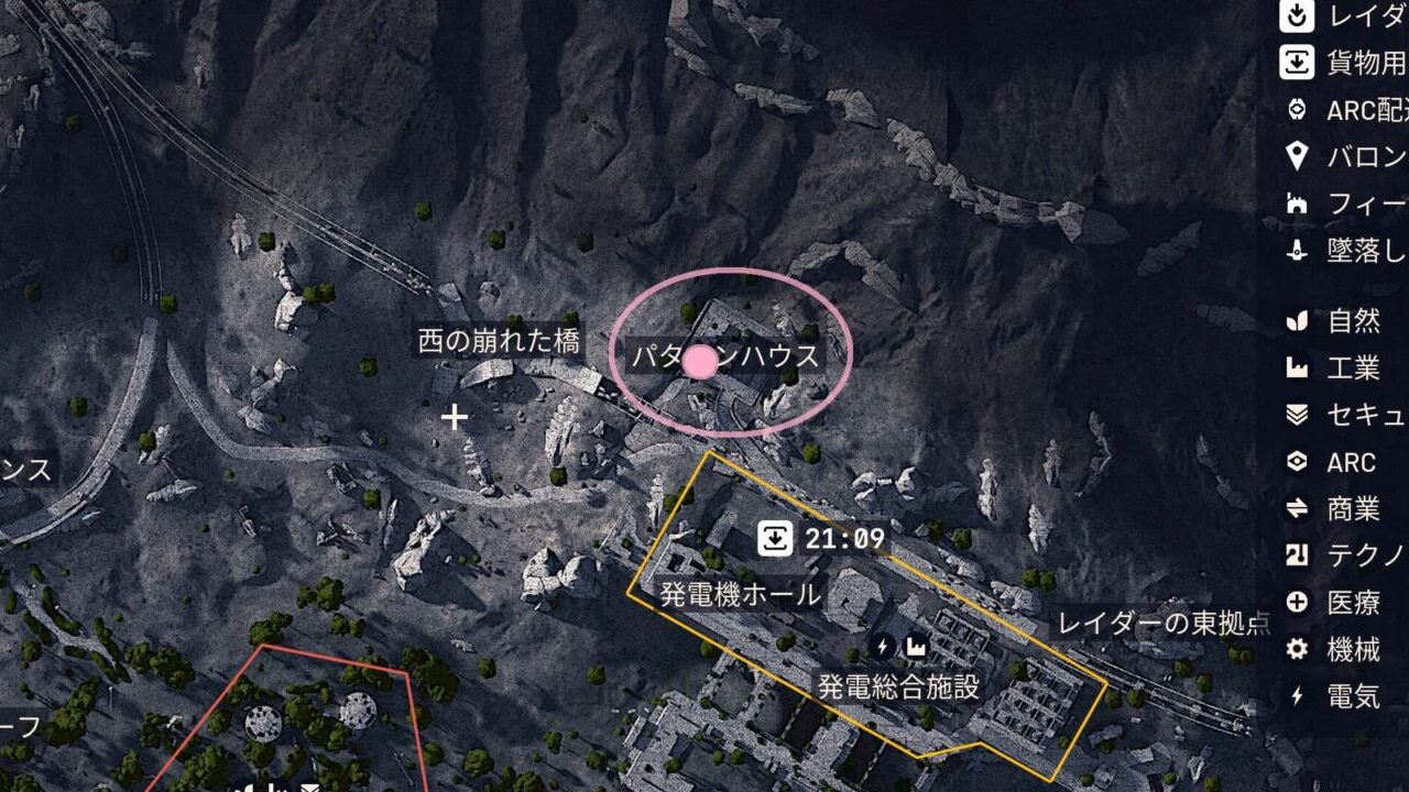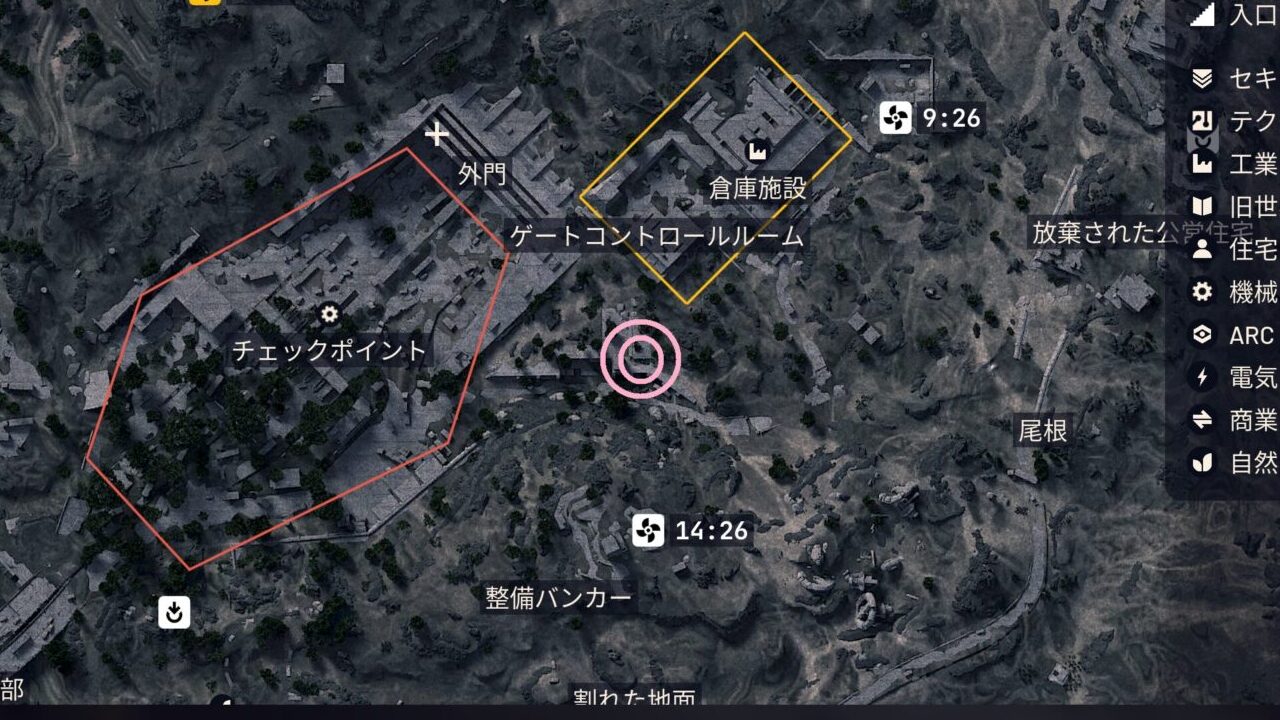 - 詳細: 塔の白い壁面に近づくと、インタラクトできるポイントがあります。このエリアはARCの敵が多いため、ステルスで近づくのが安全です。