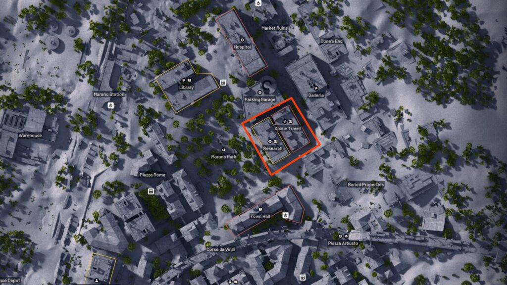 スポット1:埋もれた街(建物:宇宙トラベル&研究)