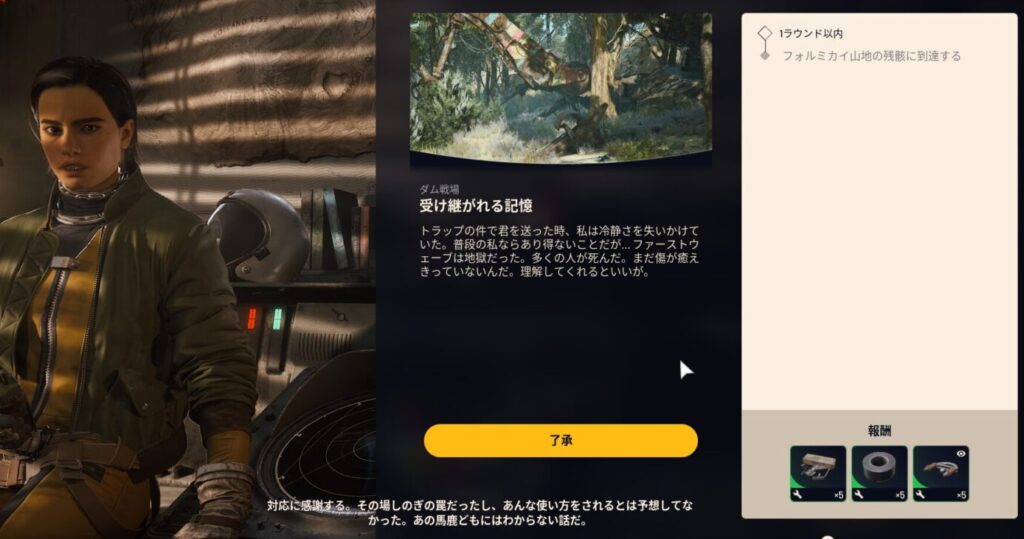「受け継がれる記憶」は、この過酷な世界観を感じられるエモーショナルなクエストです。場所さえ分かれば短時間で終わるので、ダム戦場へ降りる際はぜひついでにクリアしておきましょう!