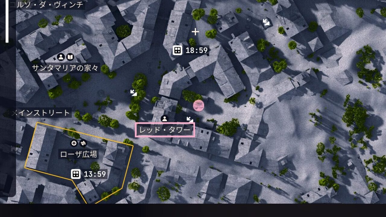 目的地はマップの南東、「ローザ広場」のすぐ隣にある「レッドタワー」です。