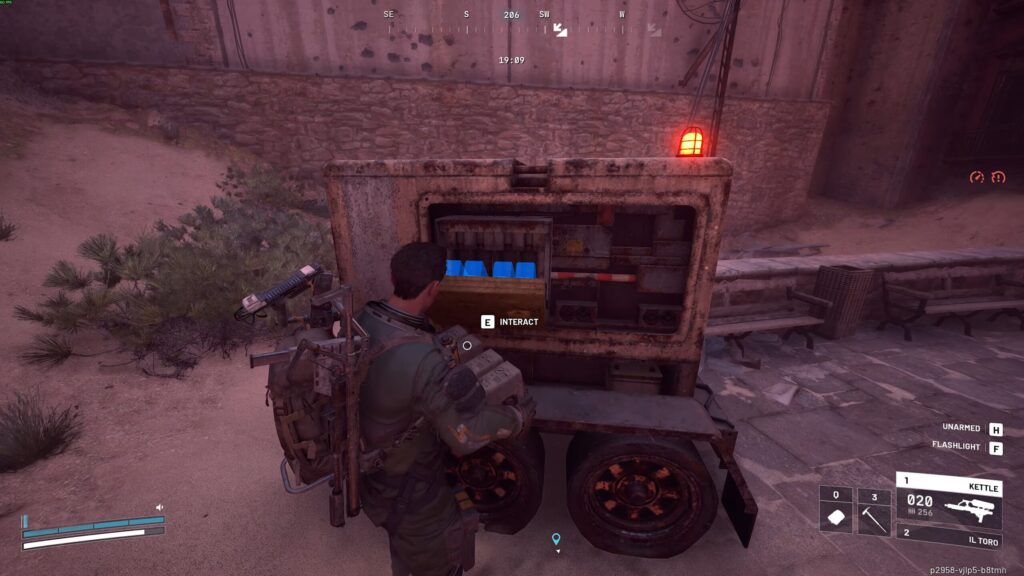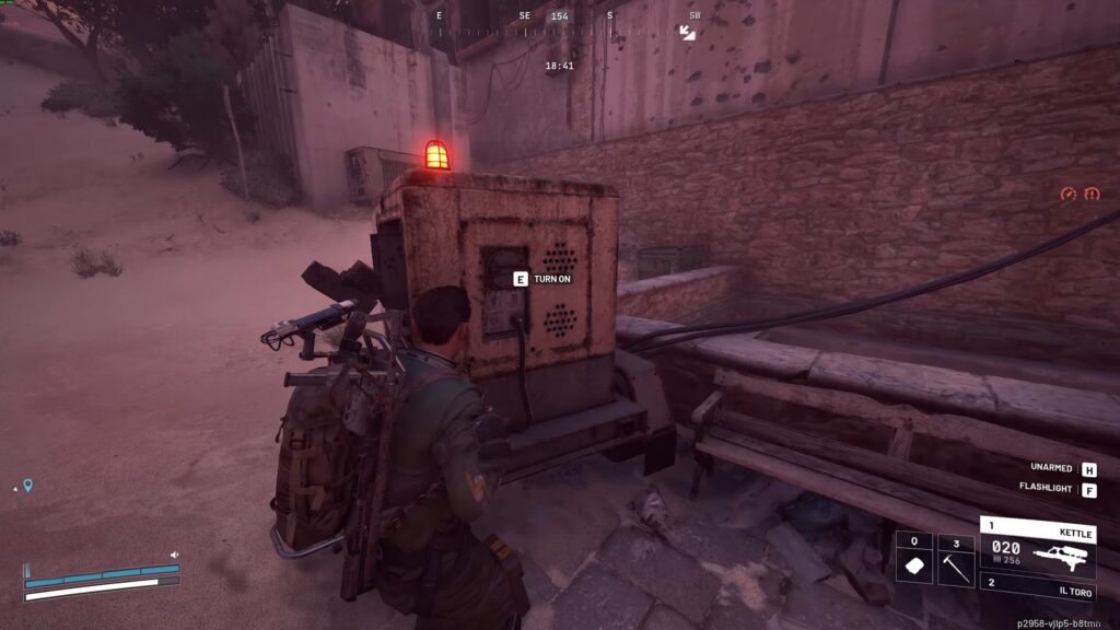 バッテリーを設置したら、ジェネレーターの右側にあるスイッチにインタラクトして電源を入れます。これでタワーへの電力供給が開始されます。