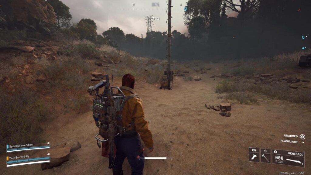 - 目印: 破壊された建物や倒れた電柱が散乱している丘陵地帯です。中央に「ワイヤーが巻き付いた高い鉄柱」があり、それがEMPトラップです。