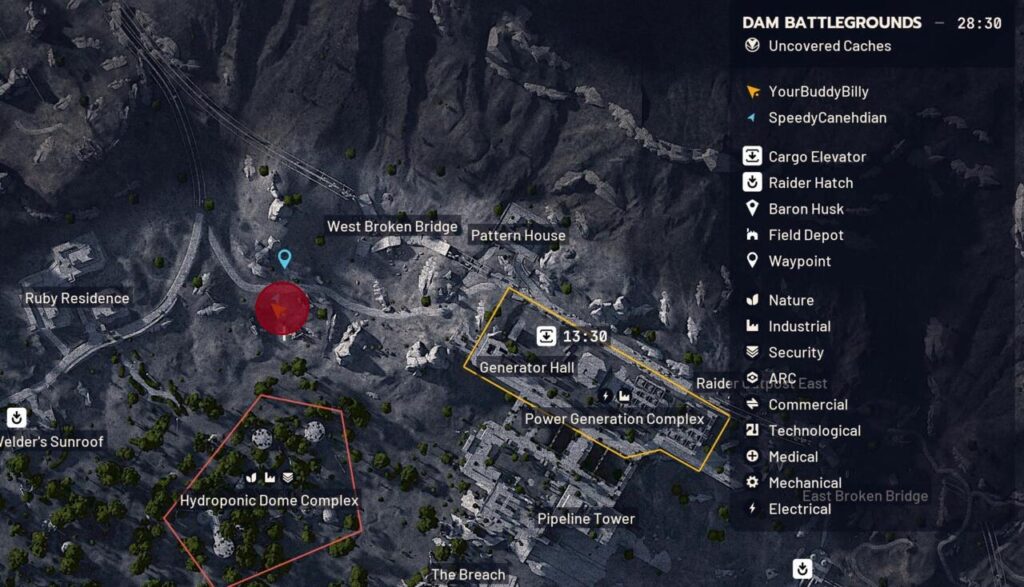 - 場所の目安: マップ上部の「西の崩落した橋」のすぐ南西、「ルビーレジデンス」との間にあります。