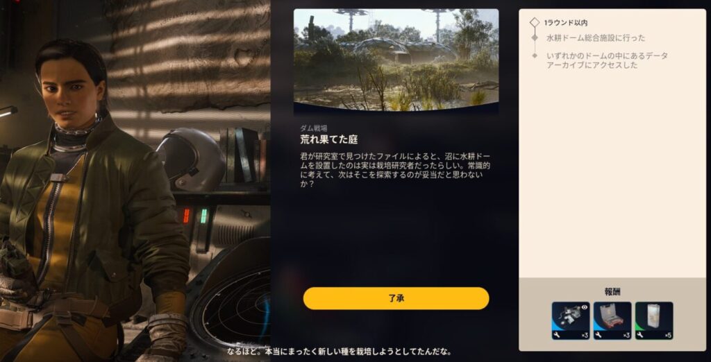このクエストは、前段階の「バランスのとれた収穫」で入手した情報を元に、さらなる調査を進める内容となっています。戦闘よりも「隠密」と「迅速な移動」が鍵を握るクエストです。